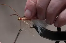 isn't big art. It's a simple and rather crude fly with few materials, and only the tail can offer a small challenge. The tail is a squarely cut off marabout tail, and this can be made in a couple of ways. On Mak-Flies' video it's done with loose barbs cut off the side of a large marabou feather. These are tied in a little longer than needed, and then torn to the right length. This method works fine on the thin and evenly thick marabou barbs, and will leave a bushy and full tail. The method allows you to tie two or more flies from a single marabou feather.