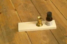 Now it was time to dig into the wooden scraps and find some small pieces in various sizes. My idea was to add a block with small holes for scissors, needles and bobbin holders and a flat piece of wood with a few pegs for spools and maybe one with some larger holes for my varnish, dubbing needle cleaner (a film canister) and what-have-you.